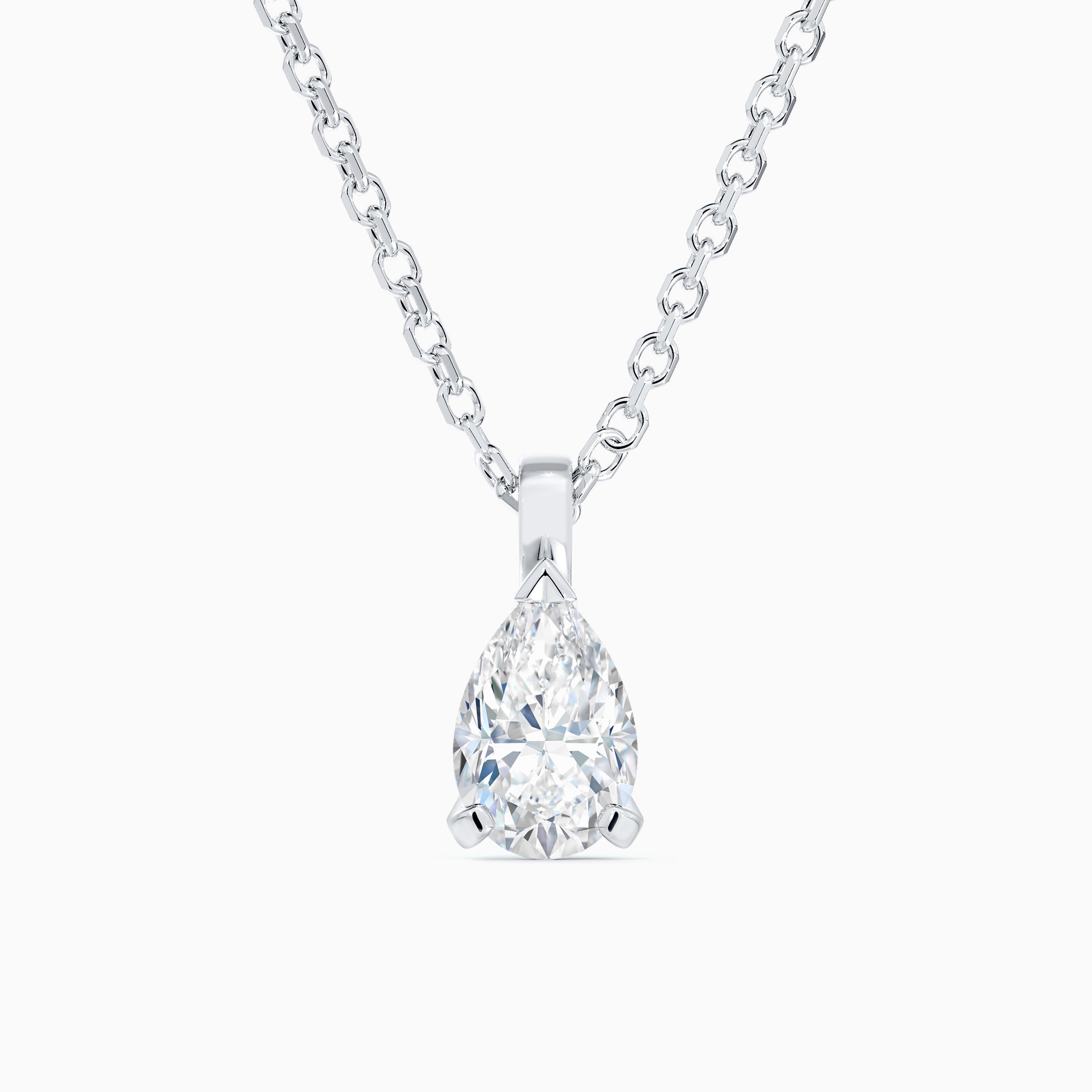 Classically elegant, this diamond necklace is a timeless piece with contemporary resonance. A single eye-catching 0.50 carat pear-shaped diamond is set in platinum, allowing maximum light to reach the solitaire. It is suspended from a chain of 45 cm, with a sizing loop at 39 cm and 42 cm.
